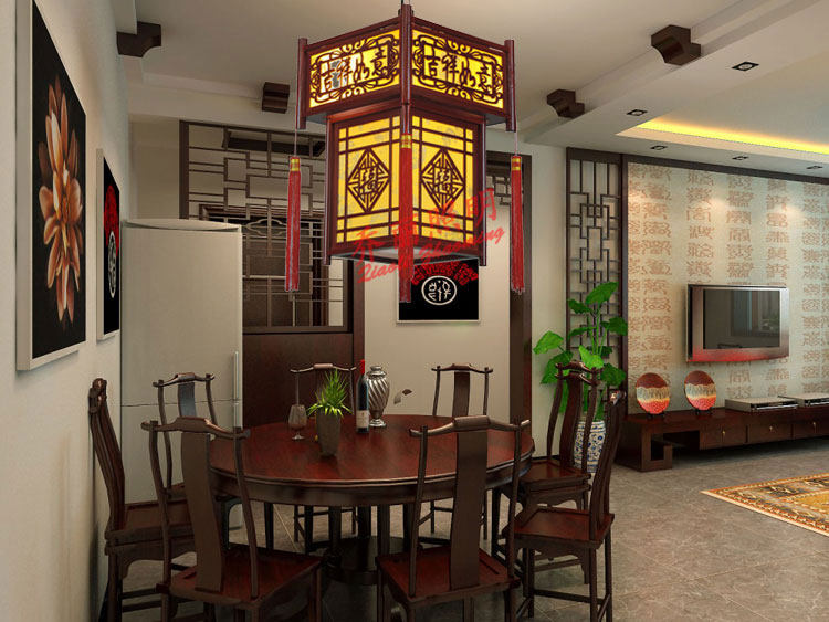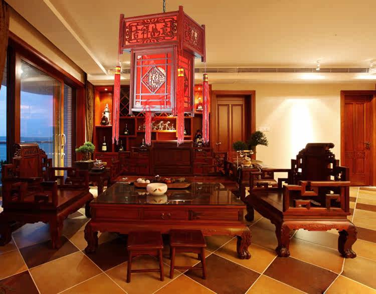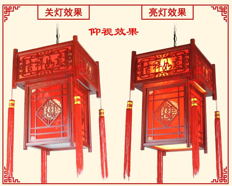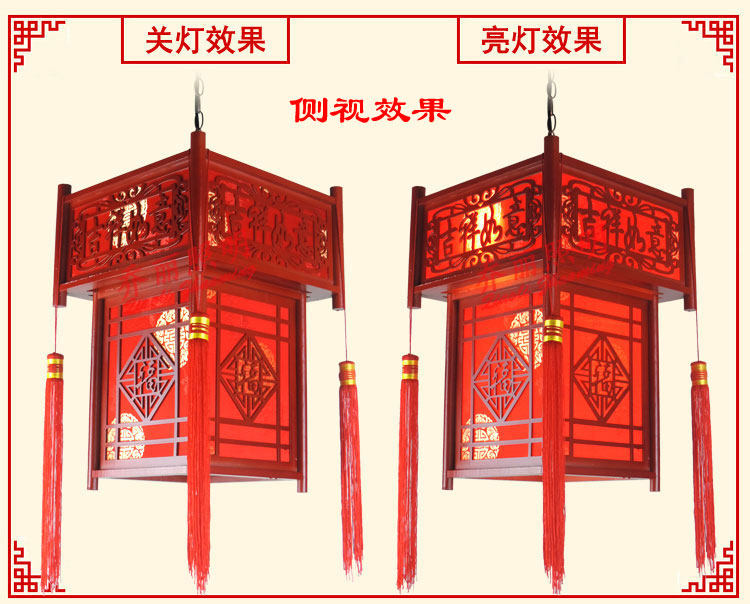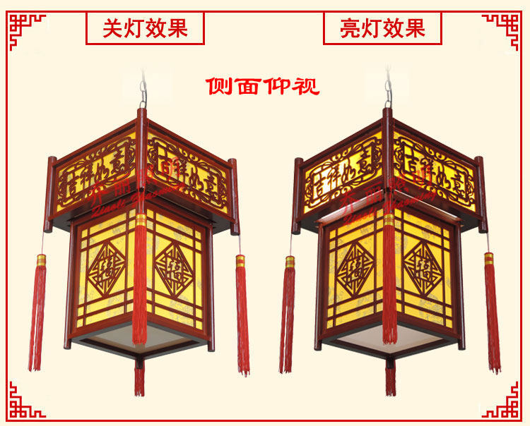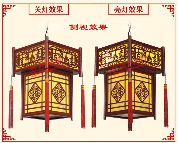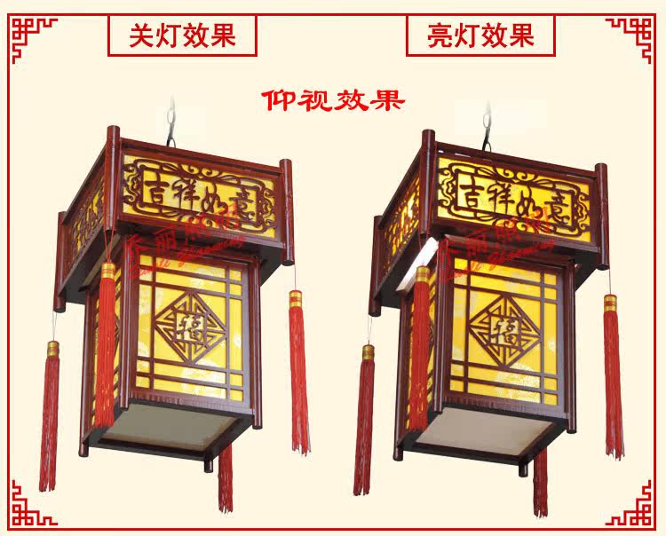 【材质】高档仿古木艺雕刻框架+台湾进口防火仿羊皮灯罩